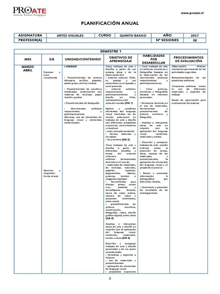 1/8, y píntalo utilizando puntillismo, usando materiales a elección (si quieres, puedes ocupar más de un material). Entorno cultural y entorno artístico Oa 1 crear trabajos de arte y diseños a partir de sus propias ideas y de la observación del: Fichas pedagógicas para la priorización curricular. Programa de estudio quinto año básico. Esta asignatura se centra, por una parte, en el conocimiento y la apreciación de distintas manifestaciones artísticas, tanto del pasado como del presente, y por otra, en el desarrollo de la capacidad creativa y expresiva de los estudiantes por medio del lenguaje visual. Aplicar y combinar elementos del lenguaje visual (incluidos los de niveles anteriores) en trabajos de arte y diseño con diferentes propósitos expresivos y creativos: Guardar guardar planificación modular artes visuales 5to.. Currículum vigente 555 view/ open.